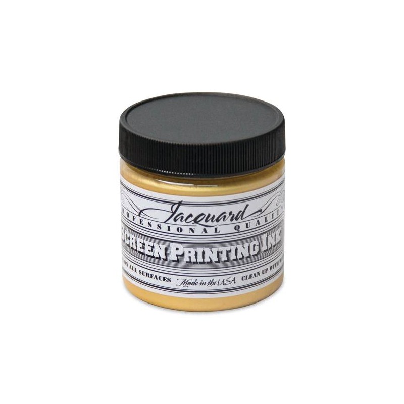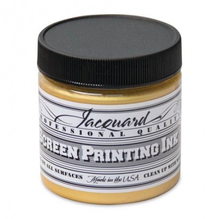 Sítotisková barva Jacquard 118 ml – zlatá je ideální pro tisk na textil, papír a další povrchy. Luxusní metalický efekt dodá projektům eleganci a vysoká kryvost zajistí trvalé výsledky.